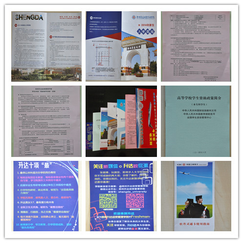 我院2014年录取通知书EMS邮寄包裹内容:1、录取通知书。2、新生入学须知(网址:http:/news/xml/121/7252014162832.html)。3、中国工商银行卡。4、银行卡使用指南。5、高等学校学生资助政策简介。6、郑州升达经贸管理学院学生申请“国家助学贷款”须知(网址:http:/news/xml/124/725201416927.html)。