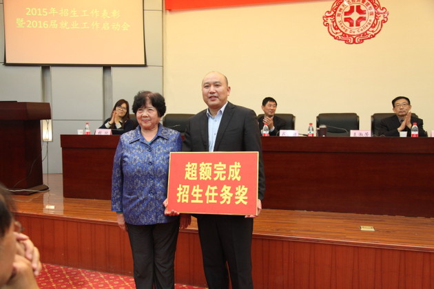 董事长王淑芳对2015年招生工作成绩的取得表示祝贺,并宣读了学院对招生工作的奖励表彰决定。会议表彰了在今年招生工作中取得优异成绩的团队和个人。