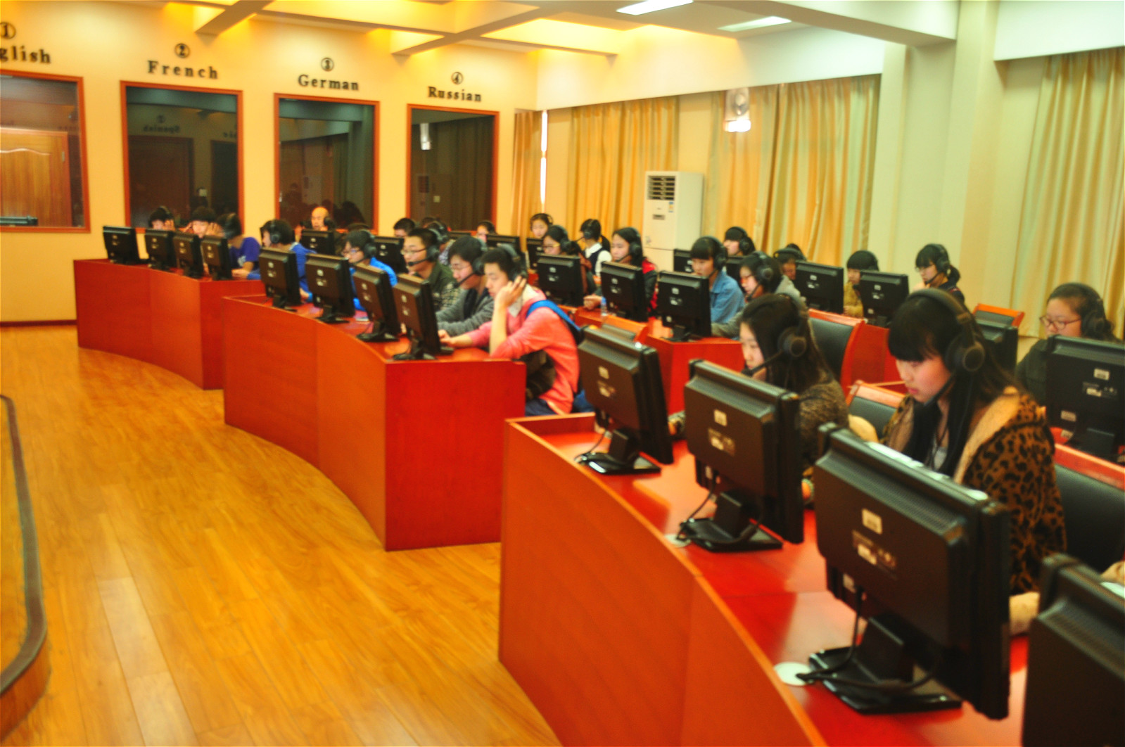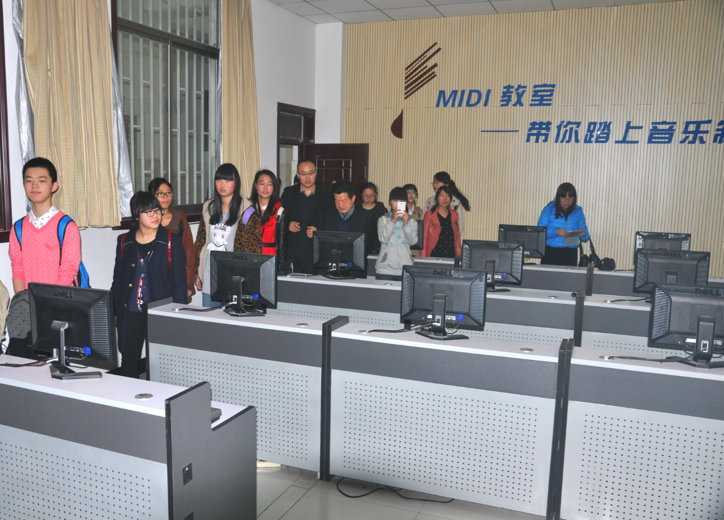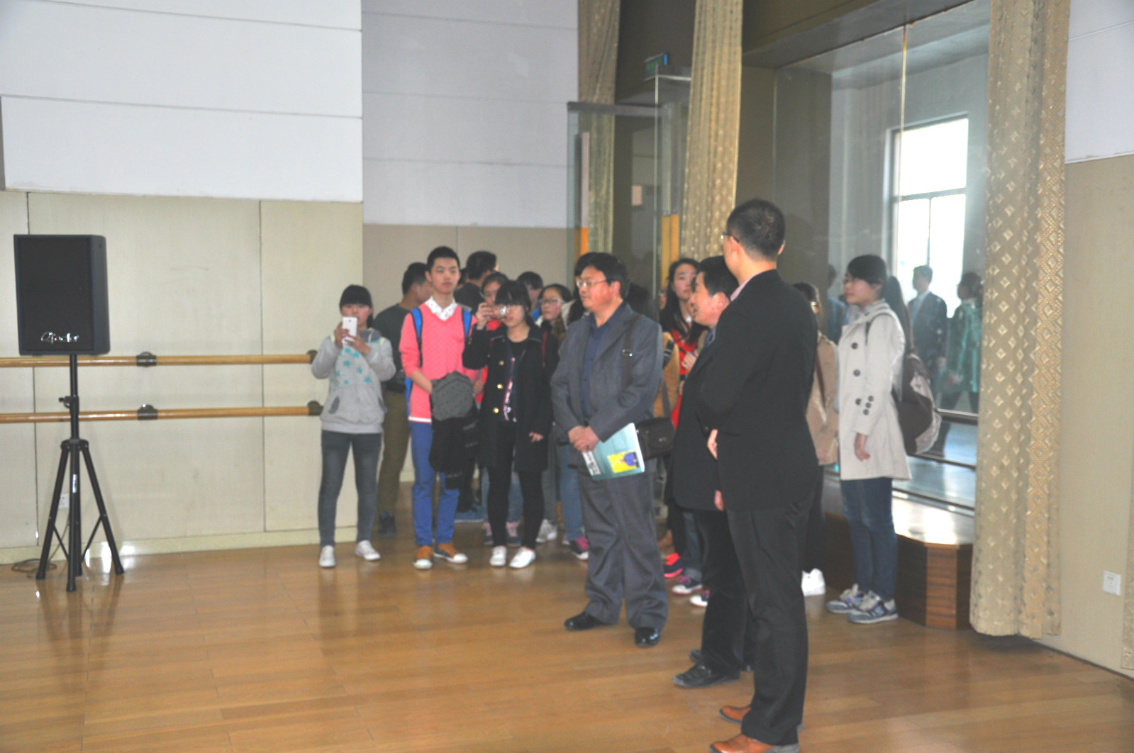 洛阳市第九中学师生一行首先参观了艺术楼的艺术展厅、琴房、音乐制作室、舞蹈排练厅、音乐厅等场馆。