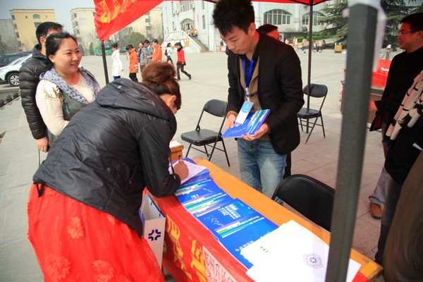 登封鹿鸣山庄是音乐专业考生集中考点,从3月4日到3月24日,艺术系在此现场招生宣传,在宣传我院艺术系的同时,艺术系教师还免费为艺术考生们进行考前辅导。这一招生形式的创新开展,收到了很好的宣传效果。初到鹿鸣山庄,就看到我院醒目的宣传条幅。在侯考大厅里,摆放有我院宣传展板,艺术系师生还不时为等待考试的考生和家长送上免费矿泉水和宣传资料,温馨的服务赢得阵阵赞美。