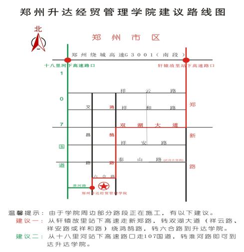 六、 来校路线:考生可在郑州火车站西出站口乘551路公交车终点站即到升达学院。