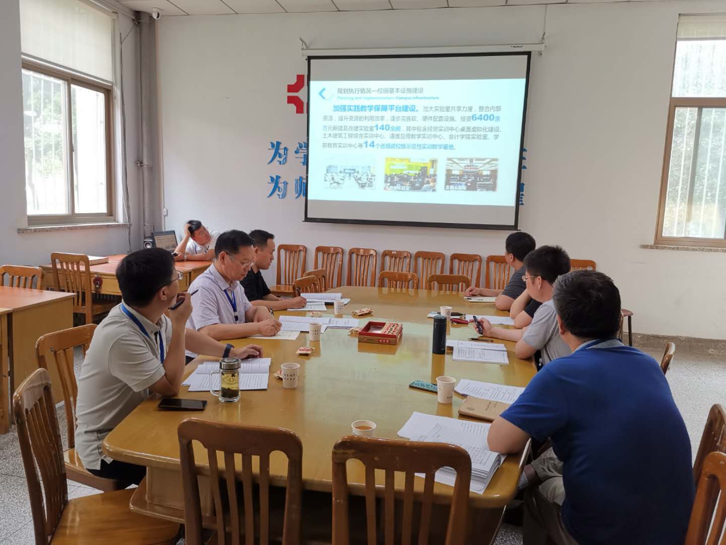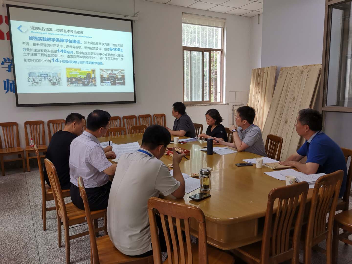 6月27日8:30张金安副校长、杨存博处长一行莅临总务处,对学校“十三五”规划中的校园建设规划中期实施进展情况进行督查指导。