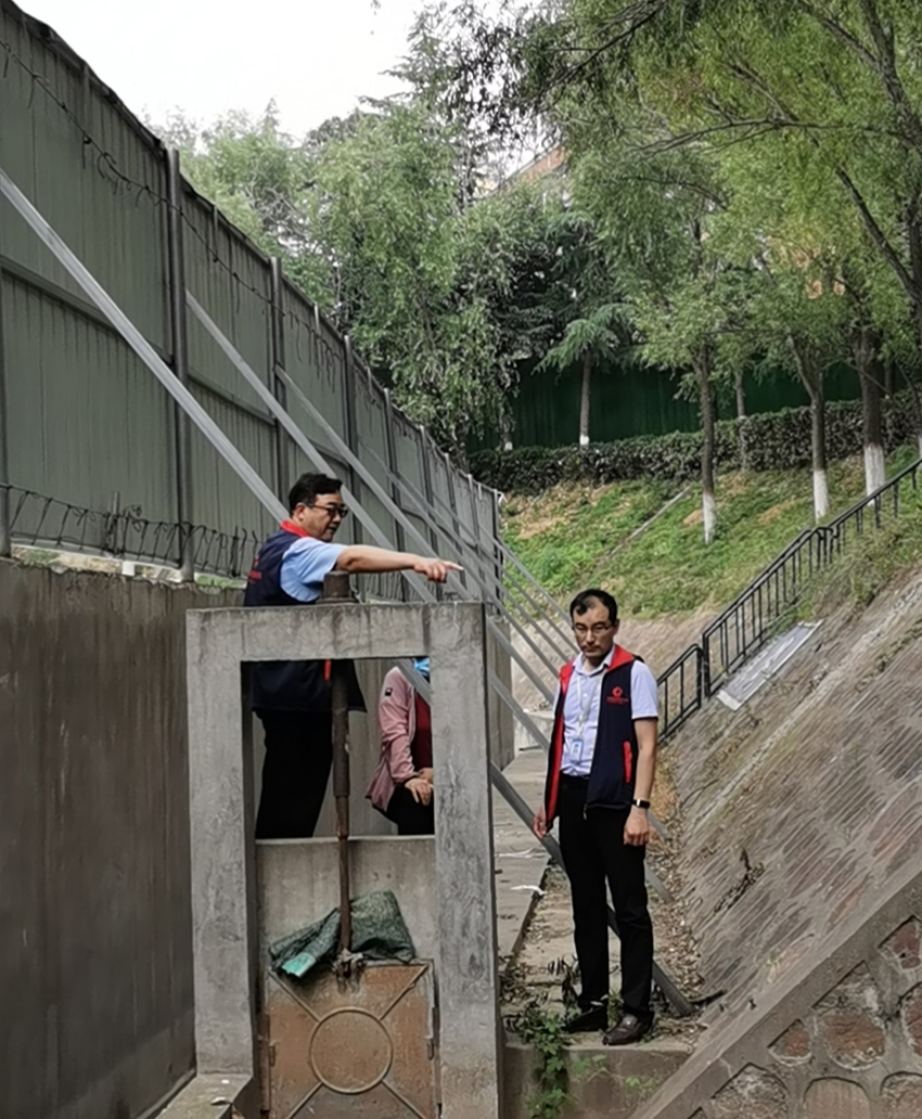 巡视至3号氧化池,王董事说:王淑芳董事长非常重视学校防汛工作,多次对防汛工作做出重要指示和安排部署,总务处等有关部门要认真落实董事长的指示,深入一线,实地测量,随时巡查,杜绝安全隐患,确保汛期校园安全。王董事来到泄洪口,询问泄洪口的流量设计,以及我校的下游泄洪承载能力,要求确保汛期洪峰能够按照预期警戒水位顺利通过我校,同时指示总务处相关部门做好防汛预案,在汛期巡检主要泄洪设施,确保今年汛期零险情。鉴于我校运动场地紧张,王董事说,要在保证安全使用的前提下,对于3号氧化池的池底运动场进行改造,按照董事长的要求,既要发挥氧化池的防汛功能,又要拿出科学合理的改造方案并抓紧实施,做到合理利用。