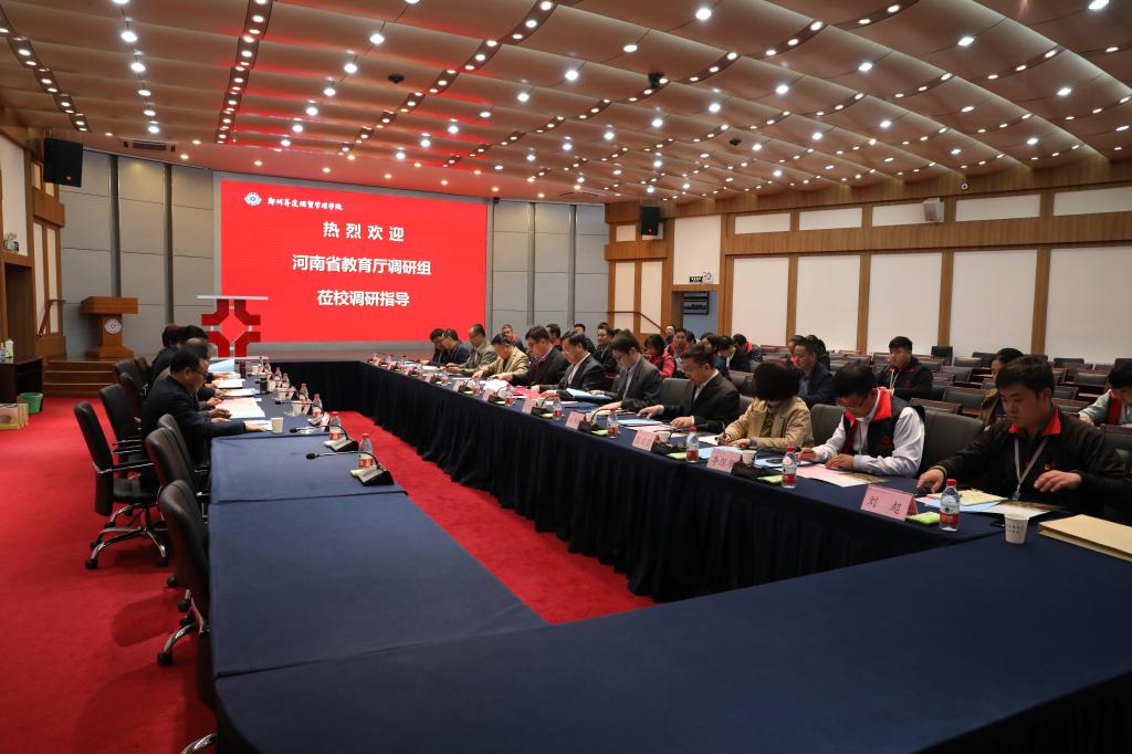 张金安副校长向调研组介绍了我校的建校历程、办学理念、党建思政、教育教学、师资队伍、校园文化、管理服务、就业质量等。