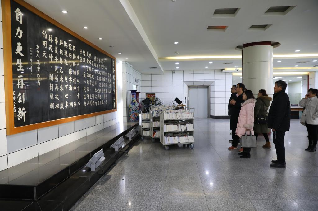 执行董事王新奇陪同来宾参观图书馆