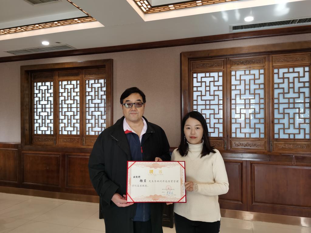 王新奇董事代表学校向杨贝颁发聘书