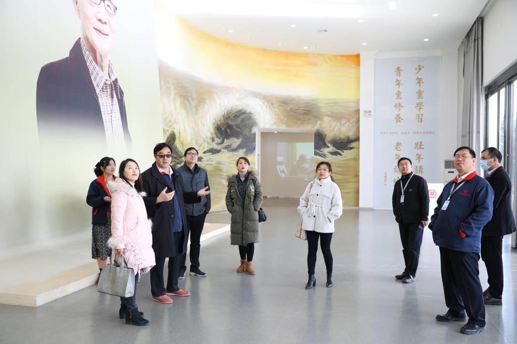 王新奇执行董事在创办人纪念馆向来宾介绍学校发展历程