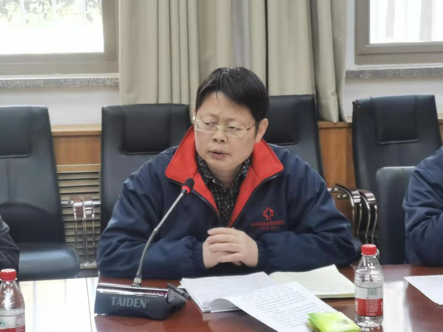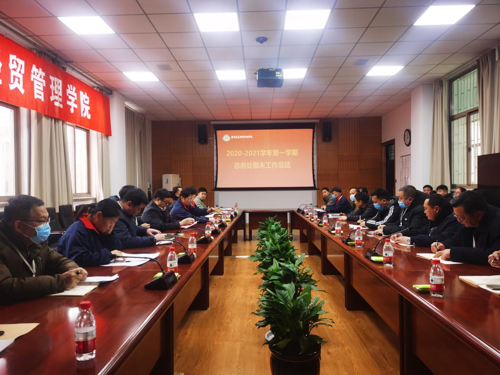 1月6日下午,总务处全体职工在行政楼第二会议室召开了2020—2021学年第一学期期末工作总结大会。学校执行董事王新奇、副校长兼总务长张其武、科研处处长兼董事会秘书杨存博、总务长助理冯亚飞、事务科科长务孟俊、事务科副科长虎会飞、保卫科科长程宪中、伙食科科长刘超、营建科科长申志萍、保管科科长李红亮及各科室职员、各班组长40余人参加了会议。会议由副校长兼总务长张其武主持。