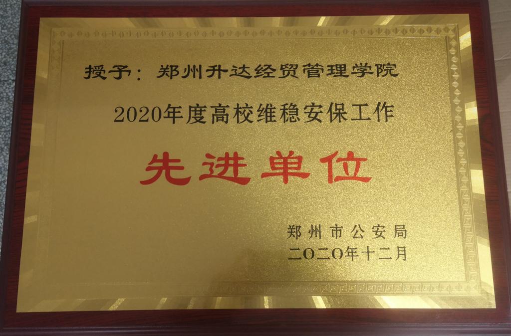 近日,郑州市公安局对“2020年度高校维稳安保工作先进单位”进行了表彰,我校被授予“2020年度维稳安保工作先进单位”。