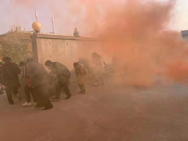 培训报告会结束时,根据逃生疏散演练活动的安排,学校微型消防站人员当场安全点燃烟雾弹,数秒钟烟雾滚滚,参加培训人员在烟雾中用湿毛巾捂鼻口,低头弯腰有秩序逃离现场,成功举行了逃生疏散演练。