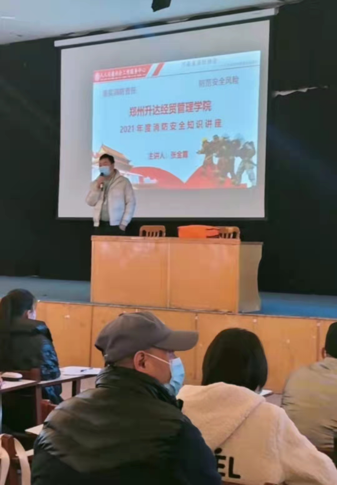 入冬以来,天干物燥,校园消防安全是每所高校“冬防”的一项重要任务,学校高度重视消防安全工作,根据校领导的安排,结合当前的疫情防控工作,总务处保卫科牵头,学务处配合,在龙湖报告厅组织了150余名的师生员工及商户代表参加的消防安全知识讲座及逃生演练活动。