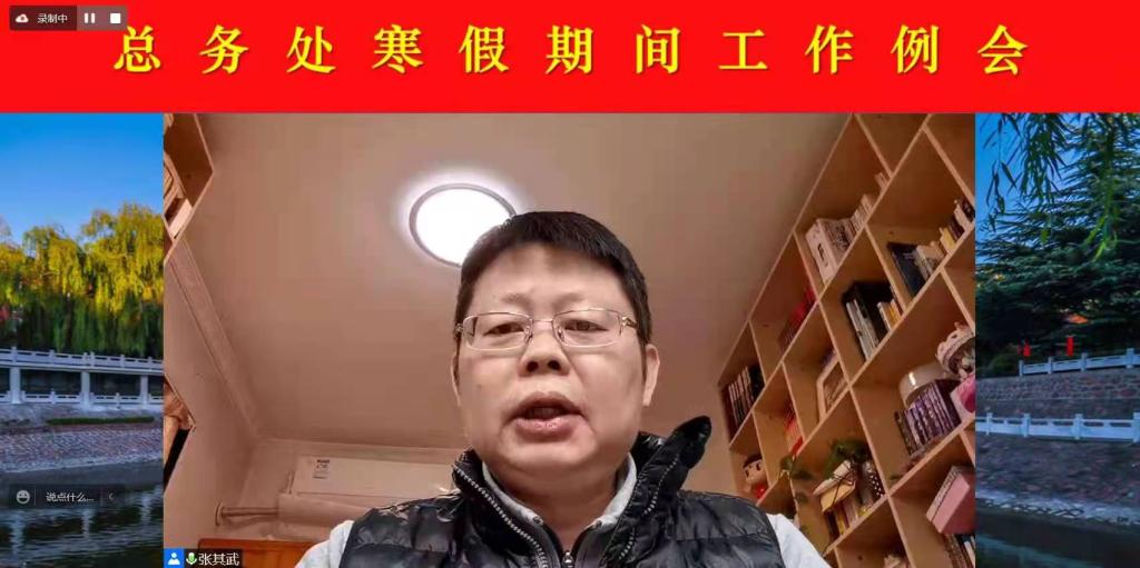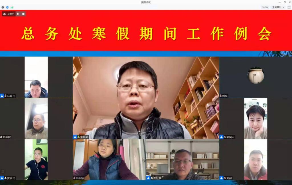 根据总务处假期各项工作安排,结合各职能部门当前工作实际,2022年1月19日上午,总务处通过视频方式召开寒假期间工作例会。总务长、各科室科长及总务处骨干成员参加会议。会议由副校长兼总务长张其武同志主持。