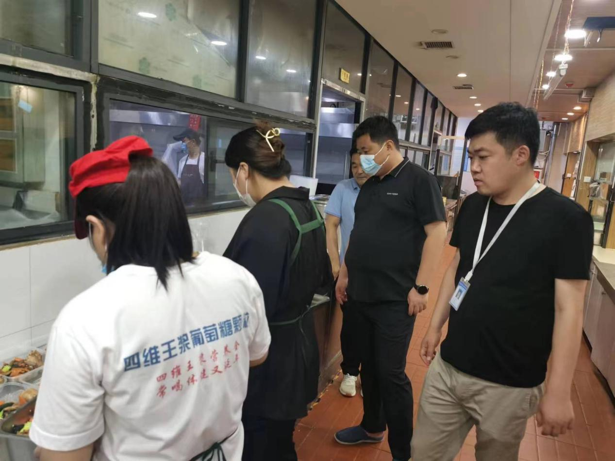 9日上午,新郑市市场监督管理局龙湖食药监所副所长杨振杰到校检查专升本考试后勤保障情况,在副校长兼总务长张其武、总务长助理冯亚飞、伙食科科长刘超等陪同下,到升达餐厅及品途餐厅检查餐饮供应品种、后厨卫生、餐具消毒和食品留样等情况,现场查阅近期食品原料进货及贮存台账记录,严格把控食品安全及菜品质量,确保所有考生能够吃得放心,以最好的状态应对考试。