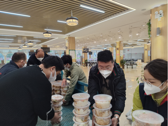 当天空泛起鱼肚白,他们已经来到自己的岗位;当夜幕笼罩大地,他们还在忙着转运物资,自己顾不上用餐只为将热乎的饭菜送到学生手中……虽很辛苦,但每个人都没有怨言,互相鼓励打气,始终坚持在防疫一线岗位,用责任和爱心温情守护着学生,用实际行动做好疫情防控后勤服务保障工作。