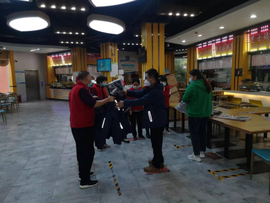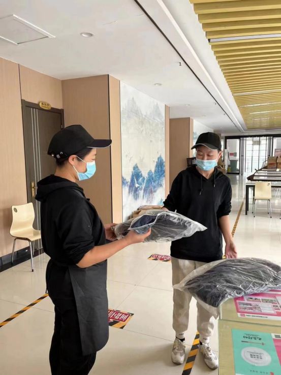 副校长张其武、总务处副处长冯亚飞,想一线人员之所想,急一线人员之所急,尽最大力量保证了奋战在后勤保障工作岗位的一线员工们的需求,积极部署为炊工采购被褥、安排住宿、开通洗浴卡等。农历十月,北方气温骤降,因学校目前仍处于疫情防控封闭管理状态,大多数食堂员工衣物准备不足。了解该情况后,总务处领导第一时间部署并安排食堂负责人采购调拨棉衣棉被等御寒保暖物资,将900余件棉衣第一时间发放到食堂一线工作人员手中。同时,冯亚飞处长担心大家工作强度大、吃不好,克服困难、多方筹措,专门为大家购买了香蕉、苹果等水果。总务处领导对奋战一线工作人员的种种贴心关怀和生活物资保障,消除了一线工作人员的后顾之忧,增强了抗疫决胜的信心和“奉献有我”的决心。