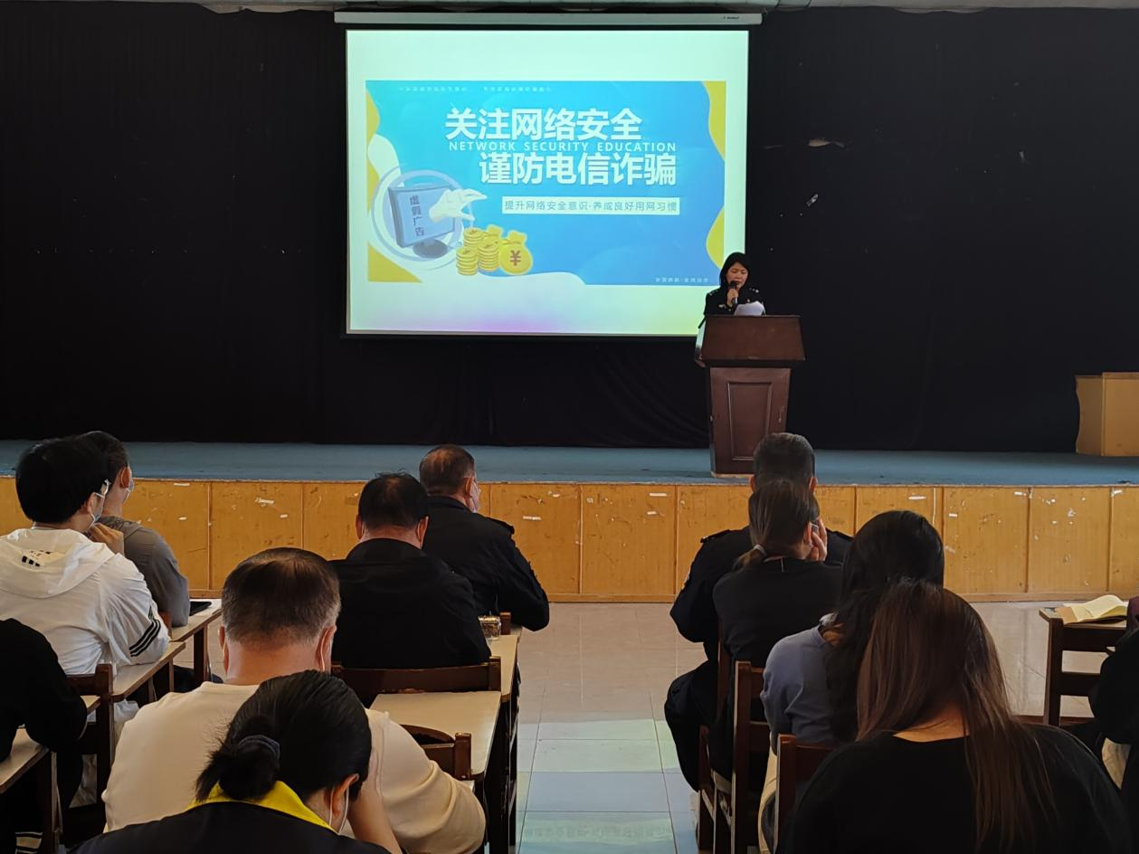 讲座结束后,学校安保人员走进校园,通过讲解、派发反诈宣传页,进一步扩大防范电信网络诈骗活动的宣传范围,使更多学生参与其中,了解反诈知识。