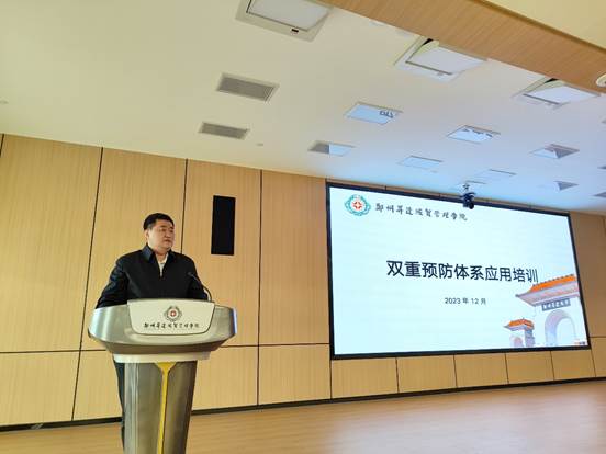 为持续巩固提升双重预防体系建设成果,推动学校双重预防体系建设工作提质增效,2023年12月7日,我校安全风险辨识管控和隐患排查治理双重预防体系应用培训会在新建图书馆二层二号报告厅召开,校党委委员、副校长张其武、总务长冯亚飞、信息工程学院院长白鑫、登封校区筹备处主任刘昊出席会议,学务处、总务处、信息工程学院、建筑工程学院等29个相关单位的教师代表参加了此次培训会,培训会由后勤服务中心副处长刘超主持。