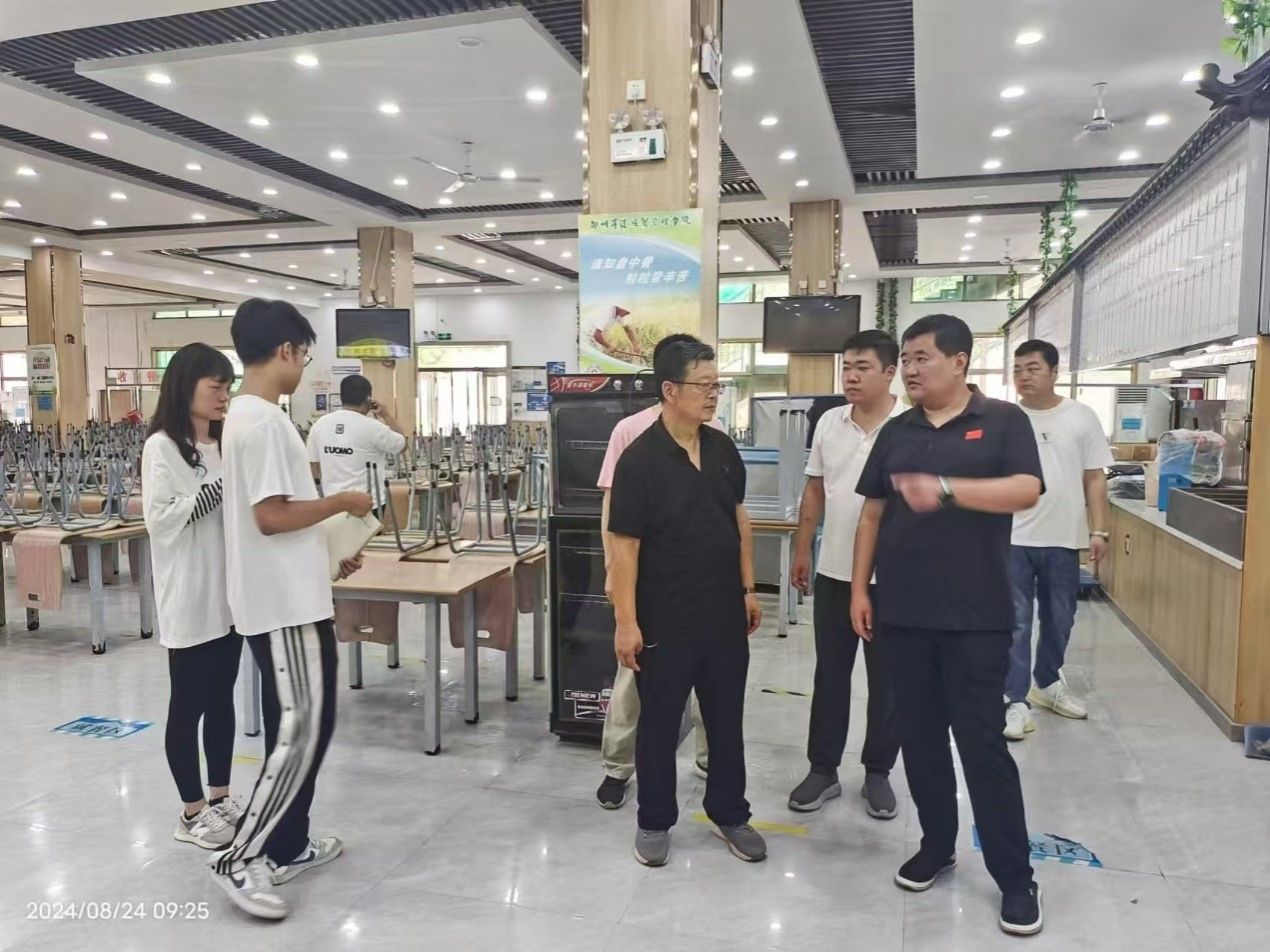 为切实做好2024年秋季开学后勤保障工作,迎接新学期,确保开学工作安全、有序。8月24日上午,总务长冯亚飞带领各科室相关工作人员对学校开学前后勤保障准备工作、餐饮工作、安全稳定工作等落实情况开展了检查。