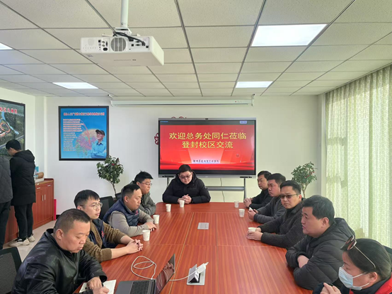 为做好登封校区启用前后勤相关的筹备工作,1月19日,总务长冯亚飞带队前往登封校区开展后勤保障调研工作,后勤服务中心副主任兼伙食科科长刘超、营缮科科长申志萍、保卫科科长杜书安、后勤服务中心办公室主任常洪嘉及各科工作人员参加调研。