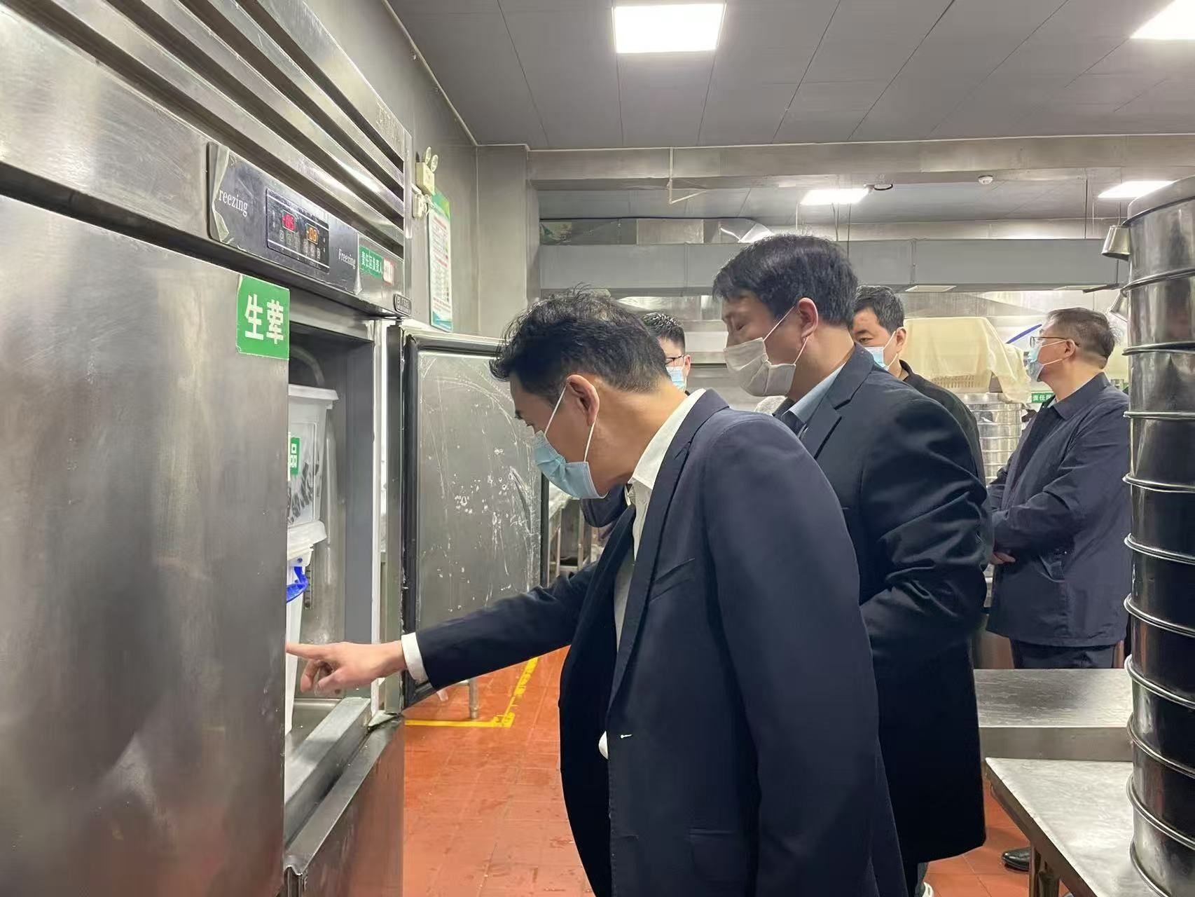 为全方位强化食堂食品安全监管,落实学校食品安全主体责任,2025年4月1日,新郑市副市长苗瑞光、新郑市市场监督管理局李建勇局长和新郑市市场监督管理局龙湖所所长李耀晖一行领导莅临我校对我校食堂开展全面检查,总务长冯亚飞、后勤服务中心副处长刘超等相关工作人员陪同。