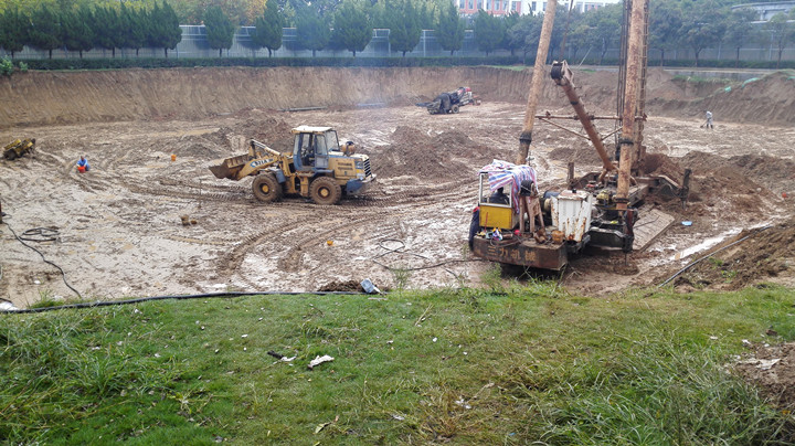 2017年09月20日,在完成前期体育馆东大坑土方开挖后,广亚大楼桩基施工单位正式进场。营建科组织施工单位进场后自购施工电缆配合连接施工用电。9月21日正式开始施工,历经9月份到10月中旬20多日秋季连续降水天气,在营建科强力督导下,施工单位冒雨施工,在10月18日,基本完成所有桩的引孔工作。