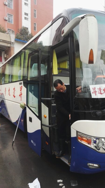 司机班同仁清洗校车,全心全意为升达教工营造干净舒适的乘车环境。